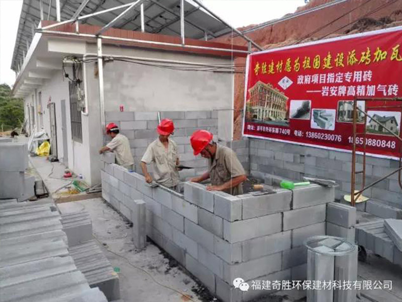 福建奇勝環(huán)保建材科技有限公司隨著可開發(fā)利用的土地資源日趨減少及節(jié)能降耗意識的增強,實心粘土磚逐漸在全國各地被禁止使用,非粘土類新型輕質墻體材料成了較為理想的替代產品。為適應建筑市場的需求,福建奇勝環(huán)保建材科技有限公司研發(fā)生產了巖安牌系列產品:巖安牌新新型高精水泥加氣砌塊(凹凸型)、巖安牌益膠泥等。 巖安牌新新型高精水泥加氣砌塊(凹凸型)是在普通加氣磚的基礎上,通過分子分析,添加進口防水劑,經多次的試驗、檢測,研發(fā)生產出強度更高,表面更平整,防水性能更好的新型新型高精水泥加氣砌塊。而后通過公司的研發(fā),設計出開槽流水線機械并生產出帶凹凸槽的高精加氣砌塊,把開槽后后生產的廢渣,通過沉淀,洗沙機振動水洗,選出40-150目細沙,并經過電加熱烘干機烘干,通過提升機提升至儲料罐,最后輸送到益膠泥攪拌機(添加纖維素、膠粉、木纖維等),生產出高質量的專用高精加氣砌塊粘結劑——巖安牌益膠泥。 巖安牌高精水泥加氣砌塊(凹凸型)具有輕質、實心、薄體、高強度、隔音、隔熱、防火、防潮、耐老化、吊掛力強、抗沖擊等特點;可釘、可鋸、無環(huán)境污染、可直接開槽埋設線管,施工簡單等優(yōu)點;能夠減小墻體飾面工程量,縮短墻體施工周期;增大建筑物的實用空間、減輕主體結構的負荷、減少結構工程投資、降低綜合造價,廣泛應用于各類建筑的非承重隔墻。 奇勝秉承“綠色科技,引領未來”的企業(yè)理念,將為人類追求更加低碳節(jié)能環(huán)保的生活環(huán)境樹立標桿。